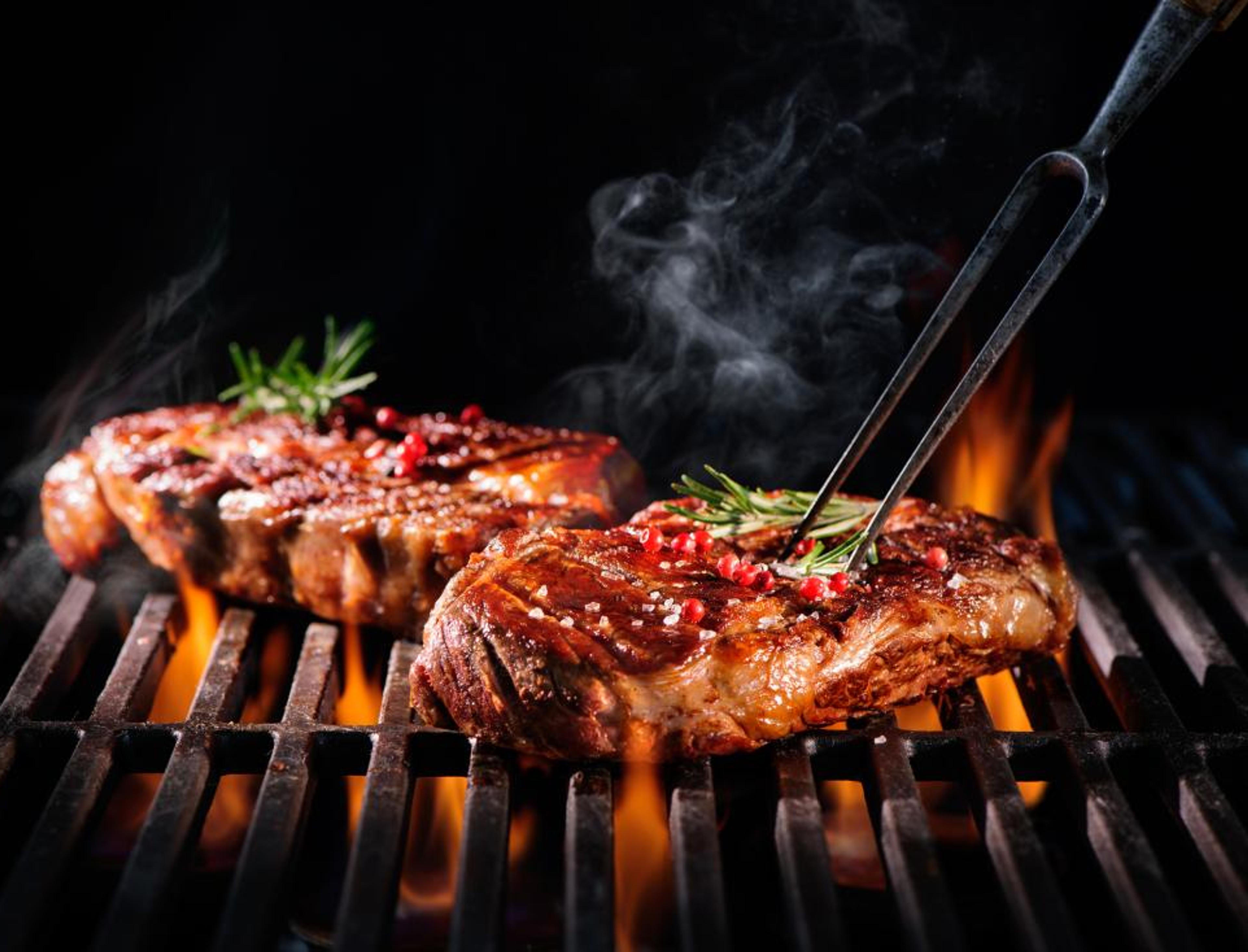 grillrätterna är gluten- och laktosfria och serveras med varma grönsaker i priset ingår ett valfritt tillbehör samt ett sås- eller smör alternativ