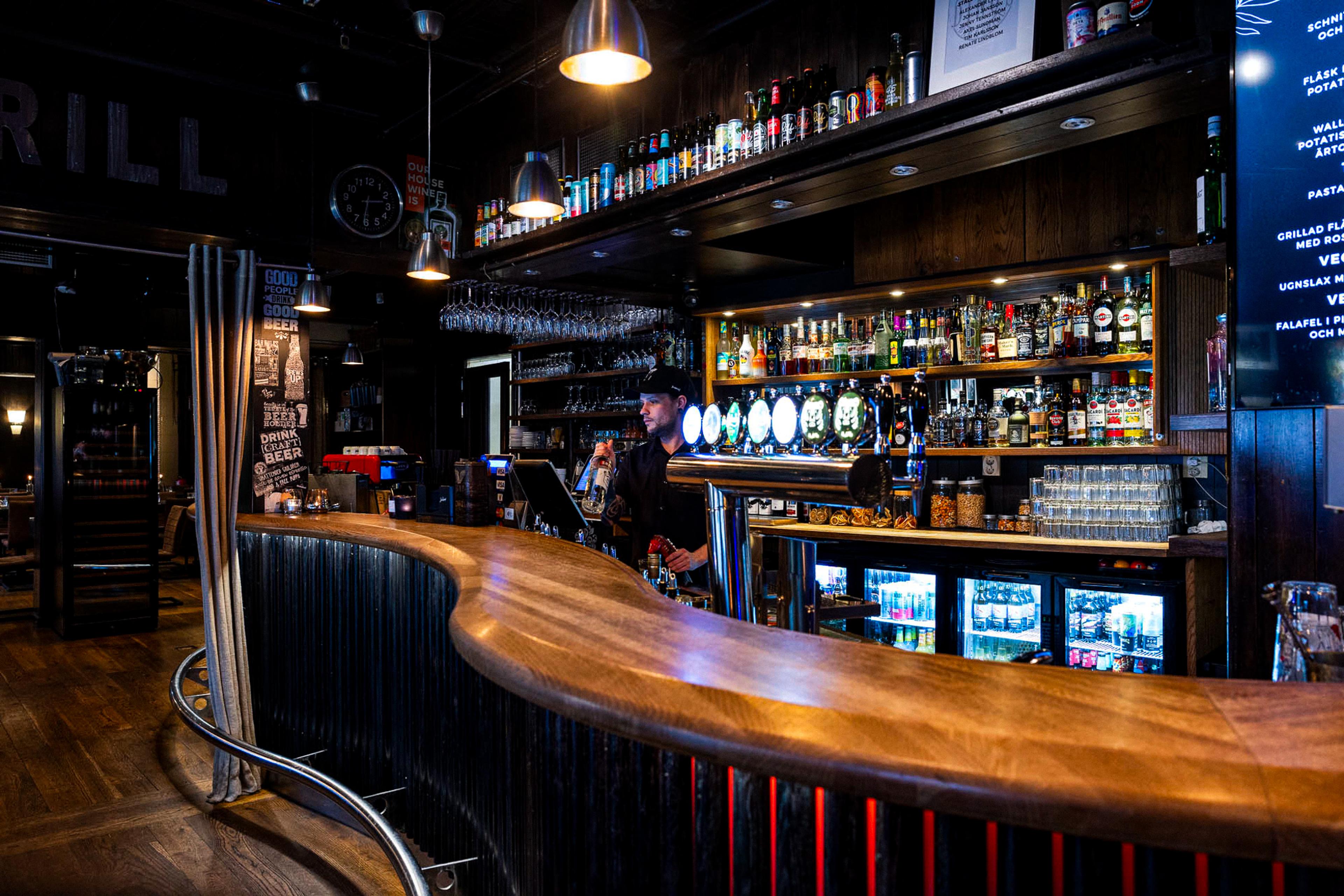 When spring comes, we open our lovely outdoor dining area and in the summer we open the large well-visited outdoor bar plus another floor in the form of a popular sun terrace with tables for food service and comfortable sofas for our drinking guests who want to enjoy the best evening sun in town. During the high season, there is troubadour entertainment from the outdoor stage in the evenings, and both the indoor bar and the outdoor terrace are open until 04:00.